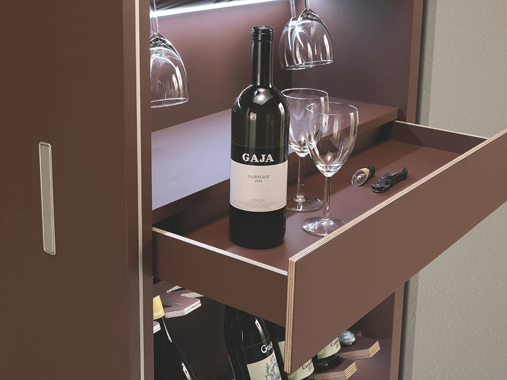 Una cantina vino a scomparsa pensata per chi cerca soluzioni di arredo evolute, discrete e altamente funzionali.