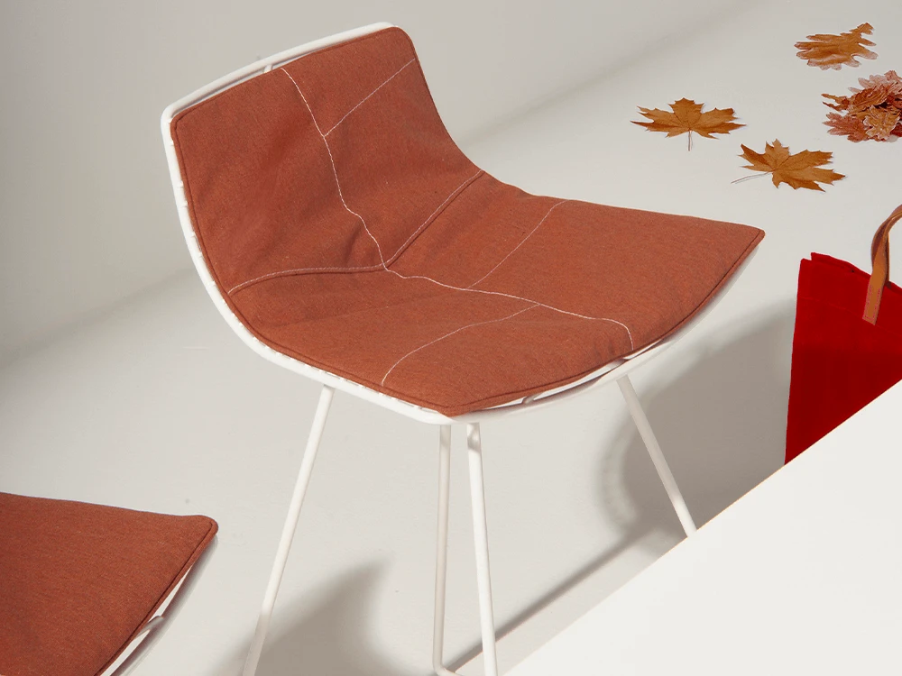 La nuova finitura ruggine si affianca a moka, verde e bianco; le cuciture decorative in quattro tonalità (moka, bianco, verde, ruggine) permettono di coordinare sedie, tavoli outdoor e cuscini drenanti. Questa personalizzazione rende la collezione Leaf ideale per progetti contract coerenti e per l’arredo outdoor domestico. Keyword ripetute: ruggine, collezione Leaf, arredo outdoor contract.